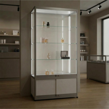 - Ästhetik und Transparenz: Die Verwendung von gehärtetem Glas schafft eine ästhetisch ansprechende, transparente Präsentation, die die Gegenstände gut sichtbar macht und gleichzeitig einen professionellen Look bietet.