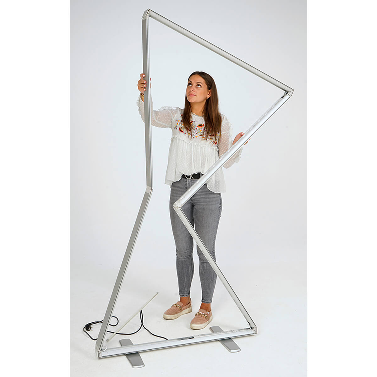 Der LED-Textilspannrahmen QUICK  ist eine äußerst praktische Lösung für Messen, Veranstaltungen, Pop-up-Shops und andere Situationen, in denen eine schnelle Montage erforderlich ist.