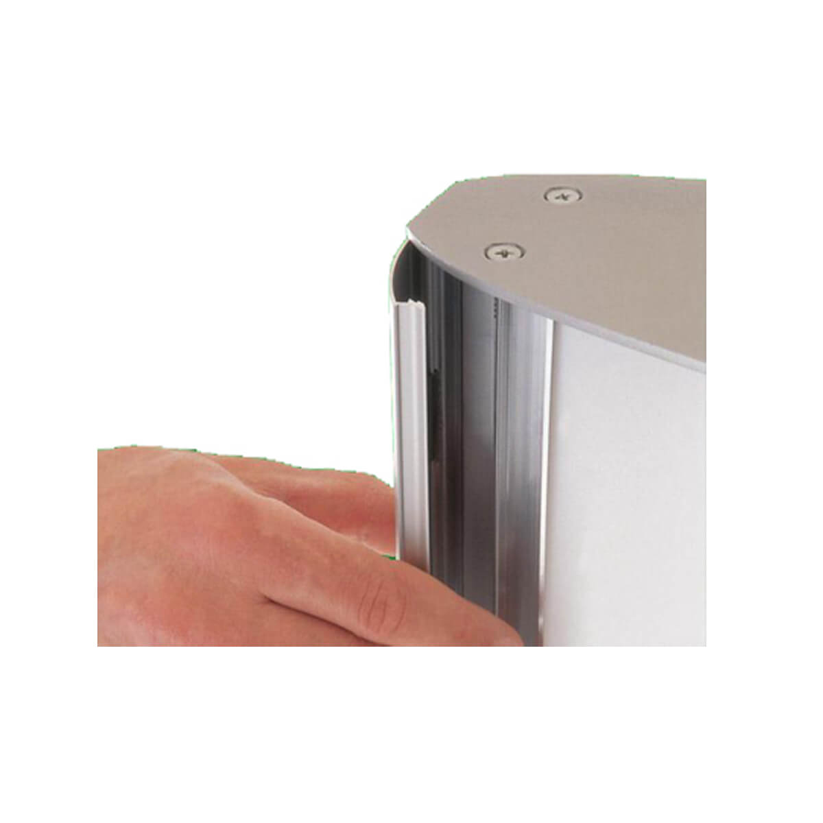 - Ausführung: Seitenprofile aus aufklappbarem, Aluminium-Profil, silber-eloxiert