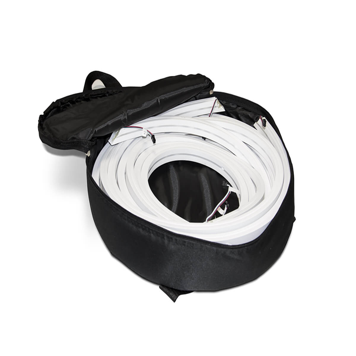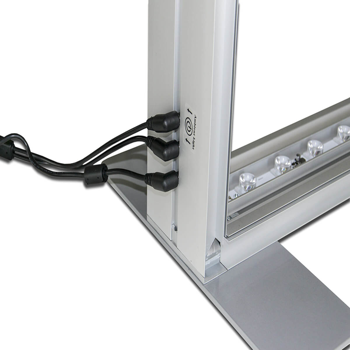 Die RGB-Beleuchtung lässt sich bequem über die mitgelieferte Fernbedienung steuern. Wählen Sie zwischen einer festen Rahmenfarbe, sanften Farbverläufen oder einem Modus, bei dem sich die Beleuchtung synchron zum Rhythmus der Musik verändert. Dadurch können die Lichteffekte ideal an Ihre Markenfarben, das Event oder die gewünschte Atmosphäre angepasst werden – für einen beeindruckenden Wow-Effekt am Messestand.