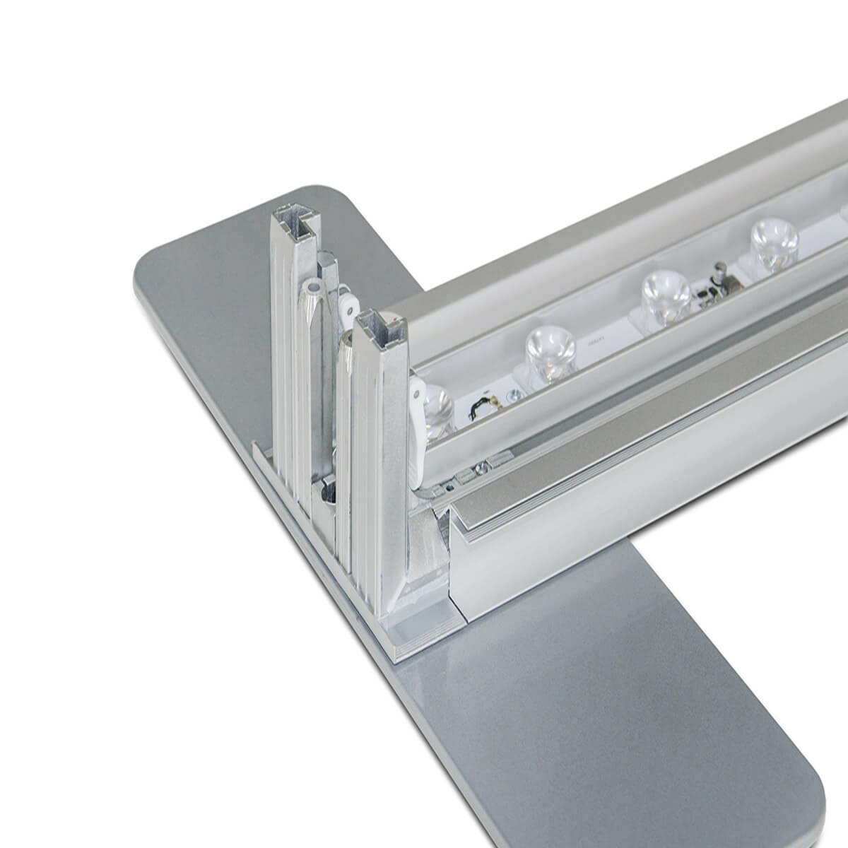 Die stabile Konstruktion aus 120 mm starken Aluminiumprofilen sorgt für eine besonders robuste und langlebige Bauweise. Dank des werkzeuglosen Aufbaus mit praktischen Schnellverbindern lässt sich das System schnell und komfortabel montieren – ideal für den Einsatz auf Messen, Events oder Präsentationen.