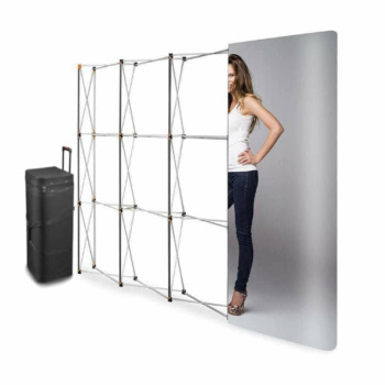 • hochwertiges Pop Up Faltdisplay mit gewölbter Front, komplett mit robuster Trolleytasche
